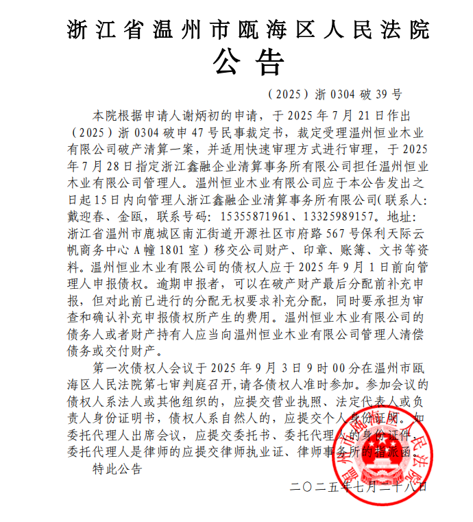 • 【溫州】浙江耀建建設有限公司破產...2024-09-26